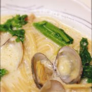 スープパスタ お鍋ひとつ簡単クッキング 具だくさんパスタ。豆乳スープでヘルシー。今日は浅利と菜の花で春の味。カテゴリ掲載。 スープパスタ お鍋ひとつ簡単クッキング パス...