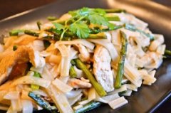 タイ風 ライスヌードル焼きそば 春が旬のアスパラガスを使った ほんのりピリ辛のタイ風焼きライスヌードルです。ナンプラーとココナッツオイルがポイント! 材料 (4人分) ライ...