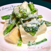 筍と菜の花のクリーム煮 2大春の味覚を絶妙バランスのクリーム煮で☆ 材料 (2人分) 筍の水煮 200g 菜の花 6本 オリーブ油 大1/2 にんにく 1スライス 白ワイン 大1 豆乳 80cc 生...