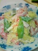 スナップエンドウとキャベツのサラダ