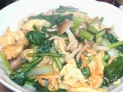 小松菜と卵のオイスターソース炒め アク抜き要らずの小松菜で、相性の良い卵との炒め物 材料 小松菜 1束 卵 3個 シメジ 1パック ☆ガラスープ 少々 ☆酒 少々 ★オイスターソース...