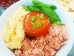 鮭の三色丼 意外と簡単( ´艸`)な手作り鮭フレークで三色丼♪お弁当にもおすすめです♡ 鮭の三色丼 塩鮭 おばあちゃんのそぼろ卵 ゆでたスナップえんどう 刻みのり 酒 みりん チ...