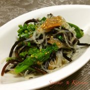 菜の花と長ひじきの梅ナムル ほろ苦菜の花を梅風味のさっぱりナムルにしました。長ひじきを加えてボリュームもアップ☆ 材料 (2人分) 菜の花 8本 長ひじき 20g 春雨 20g ◆梅干...