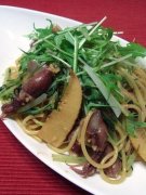 ホタルイカと筍・水菜の和風ペペロンチーノ