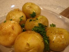 ポテトのバジルバター風味蒸し 簡単ですが、素材の味が生きておいしい~ 新じゃがの季節には特にお勧めです 材料 (二人分) ジャガイモ(小ぶりのもの) 5~6個 バター 大さじ1...