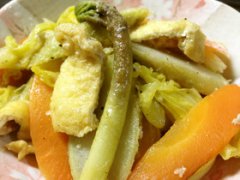 うどの塩麹炒め❀ うどと野菜、揚げなどを塩麹で炒めました❀ 春の味がいっぱいします♪ 材料 (4~5人分) うど 1本(30㎝程度のもの) キャベツ 2~3枚(200g程度...