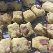 お食事スコーン ソーセージとチーズで作るお食事スコーン 材料 HM 150g 溶かしバター 50g 牛乳 40ml 魚肉ソーセージ 3本 チーズ 3枚 1 HMとバターと牛乳を混ぜ合わせる。 2 魚肉ソーセー...