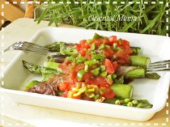 ★豚巻きアスパラのサルサソースがけ 太いアスパラに豚バラスライスを巻いてジュワーlとガス火で焼きました、サルサソースでいかが^^ 材料 (4人分) アスパラ太目 8本 ブタ...