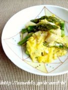アスパラと帆立のふわふわ卵炒め