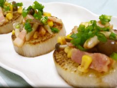 大根ステーキ肉味噌がけ 厚切り大根を香ばしく焼き付け、特製...