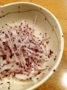 パパッと⭐ダイコンゆかり和え 簡単に箸休めの一品できます。 材料 (4人分程度) 大根 約10cm 塩 少々 市販のゆかり 小さじ1〜2 1 大根は薄い輪切りにしてから細く切る。 2 細く...