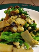菜の花とエリンギのカタルーニャ風ソテー スペイン・カタルーニャ地方の炒め物料理を菜の花・エリンギで作りました。干しぶどうの甘さと松の実の香ばしさが特徴です☆ 材料 (...