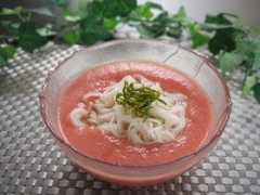 えごま油とトマトのスープでぶっかけ素麺☆ 血液サラサラ♫美肌効果抜群♪ えごま油で女子力UP☆ 認知症予防、アンチエイジング、ダイエット効果も期待♡ スタイリッシュママ...
