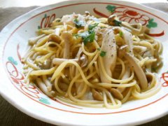 鮭とキノコの海苔佃煮ミルクスープパスタ