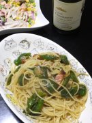 万願寺唐辛子とアンチョビベーコンのパスタ