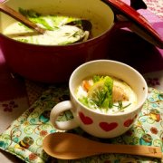 北欧気分☆サーモンと春野菜のミルクスープ ノルウェーの友達のレシピをアレンジ♪サラサラ・サーモン・ミルクスープ♪オリーブオイルやレモン・ハーブが香り暖かヘルシー☆...