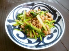小松菜とひき肉のピリ辛炒め♪