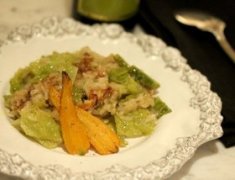 サボイキャベツの焼きリゾット チーズのお焦げがアクセントの美味しい焼きリゾットです。煮込んでも煮崩れしない甘いサボイキャベツを加えて作りました。 サボイキャベツの焼...