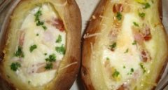 ホクホク♨︎エッグ詰めポテト♨︎ チーズが溶けてホクホクとろーりポテトです♫おもてなしにも最高な一品です♫ 材料 (2人分) じゃがいも(大) 2個 卵(M) 2個 ベーコン 1枚...