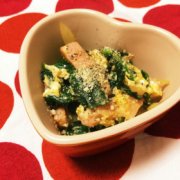 ほうれん草のバター炒め 粉チーズのせ いつものバター炒めの最後にあらびきコショウと粉チーズで雰囲気が変わります★ 材料 (2人分) ほうれん草 4房 玉ねぎ 1/4 厚切りベーコン...
