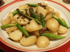 じゃがいもと野菜の黒オリーブチーズ炒め♪