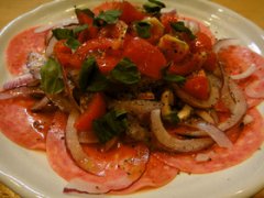 サラミとオニオンのイタリアンサラダ いただいたバルサミコ酢でおしゃれなで簡単な前菜を作ってみました。 洋食の一品に是非どうぞ。 材料 サラミ 8枚程度(お好みの量で) 玉...