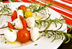 ローズマリーカプレーゼ クリスマスに ローズマリーの枝に挿した、チェリートマト、モッツアレラ パプリカやバジル。カプレーゼを片手で食べちゃいましょ。パーティに 材料 (...