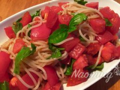 冷製トマトパスタ❤️マクロビご飯 トマトを刻んで調味料でマリネにしておけば後はパスタを茹でるだけ♪火を使わないので暑い夏にぴったりですね 高橋直弓 材料 (2人分) スパ...
