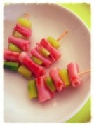 キャラ弁*アスパラでミニチュアねぎま串風 ちょーーー簡単です♡ お弁当の定番、アスパラベーコンを ミニチュアねぎま串風に*渋い! 冷凍可です☆ キャラ弁*アスパラでミニ...