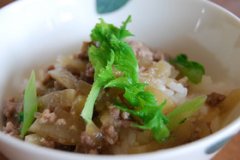 ランチにぴったり 大根どんぶり 大根を中華味に炒め、ご飯に トロリと美味しいどんぶりです 料理研究家 行長万里 ランチにぴったり 大根どんぶり 大根 豚ひき肉 おろしにんにく...