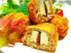 ◆厚揚げと豚肉の梅しそミルフィーユカツ♪