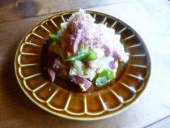 厚切りハムのチャンプルー♪ 厚切りハムでボリュームたっぷり! お酒のおともにいかがですか(^^) 材料 (2人分) ハム(塊) 100g 木綿豆腐 200g キャベツ 150g ピーマン...