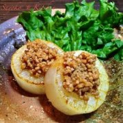 大根ステーキ肉味噌がけ 厚切り大根を香ばしく焼き付け、特製肉味噌ををソースにして…とにかく美味しい♬ 材料 (2人分) 大根 4cm厚さ4個 豚挽き肉 100g 白葱(みじん切り)...