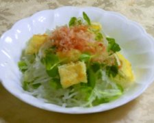 大根と薄揚げのサラダ あっさり美味しい和風サラダ きりまりママ 材料 (3人分) 大根 300g 豆苗(柔らかい上の方のみ) 1/2パック 薄揚げ 1/2枚 削り節 適量 ■ ワサビドレッシングの...