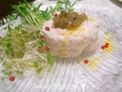 カニとサワークリームの前菜 お手軽にカニ缶にサワークリームを混ぜてセルクルで形を整えた前菜です 材料 (二人分) カニ缶 1缶 サワークリーム 30g 玉ねぎ(みじん切り) 1/4個分...