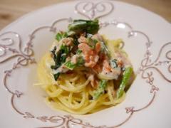 鮭とほうれん草の、クリームパスタ! 牛乳のクリームソースと、鮭、ほうれん草がよく合うバスタです。 カリカリに焼いた皮がアクセント! 材料 (3人分) 鮭の切り身 3切れ ほ...