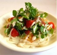 クレソンのシーザーサラダうどん 冷凍うどんと市販のドレッシングで簡単ランチ。 材料 (1人分) 冷凍うどん 1人前 ベーコンスライス 1枚 にんにく 1片 オリーブオイル 大さじ1/2...