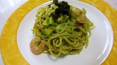 アボカドの冷製パスタ アボカドのクリーミーなパスタです。海苔の風味がアクセント。 材料 (2人分) アボカド 1個 酢 小さじ2 マヨネーズ 大さじ2 しょうゆ 小さじ2 昆布茶(粉...