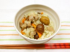秋の味覚の炊き込みごはん コンソメを使った洋風の栗ごはんです!(^^)! 秋の味覚の炊き込みごはん 米 水 むき栗 鶏もも肉 しめじ にんじん 塩 オリーブオイル 酒 洋風スープの素 こし...