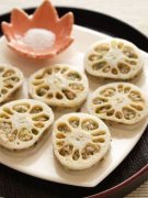 れんこんのキラキラ万華鏡蒸し レンジ調理でカンタン&ヘルシー♪れんこんの穴から見えるカラフルな詰め物が万華鏡のように綺麗♪味はさっぱりお好み焼き風☆ ochikeron 材料 (6...