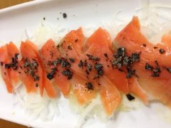 スモークサーモンのマリネ・塩糀昆布のせ 一味違って美味しい♡ 材料 (4人分) スモークサーモン 100g 玉ねぎ 1/4個 エキストラバージンオイル 大さじ2 ワインビネガー 大さじ3 塩・...