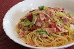 ドライトマトのペペロンチーノ☆ ドライトマトを加えていつものペペロンチーノに一工夫♪ 今回の具はドライトマト、ベーコン、春キャベツです! 材料 (1人分) パスタ麺 90〜...