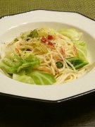 桜えびとキャベツのペペロンチーノ。