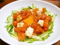サーモンユッケ クリチ添え どすぇ 大好きなユッケをお手軽サーモンで♪クリチを添えてみました。 材料 サーモン(刺身用) 1柵(180gくらい) きゅうり(千切り) 1本 ごま油 小さじ1 ク...