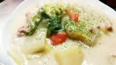 牛乳で簡単コーンと鶏肉のクリームシチュー