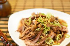 イカゲソとキノコの甘辛バター炒め