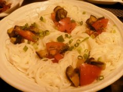 涼しげ夏野菜のつけ麺~そうめん~ トマト、ナス、みょうが、オクラなど夏野菜をふんだんに使ってつけ麺を作ってみました。麺はお手軽なそうめんです(^^) 材料 (6人分) ■ つ...