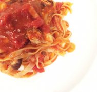 牡蠣とキノコのトマトソースパスタ