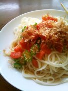 トマトとオクラのピリッと冷うどん