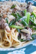 菜の花とエリンギのかぼちゃクリームソース かぼちゃをマッシュしてカルボナーラ風のクリームソースに☆菜の花のほろ苦さとかぼちゃの甘味がほどよくマッチしています♬ 材料...